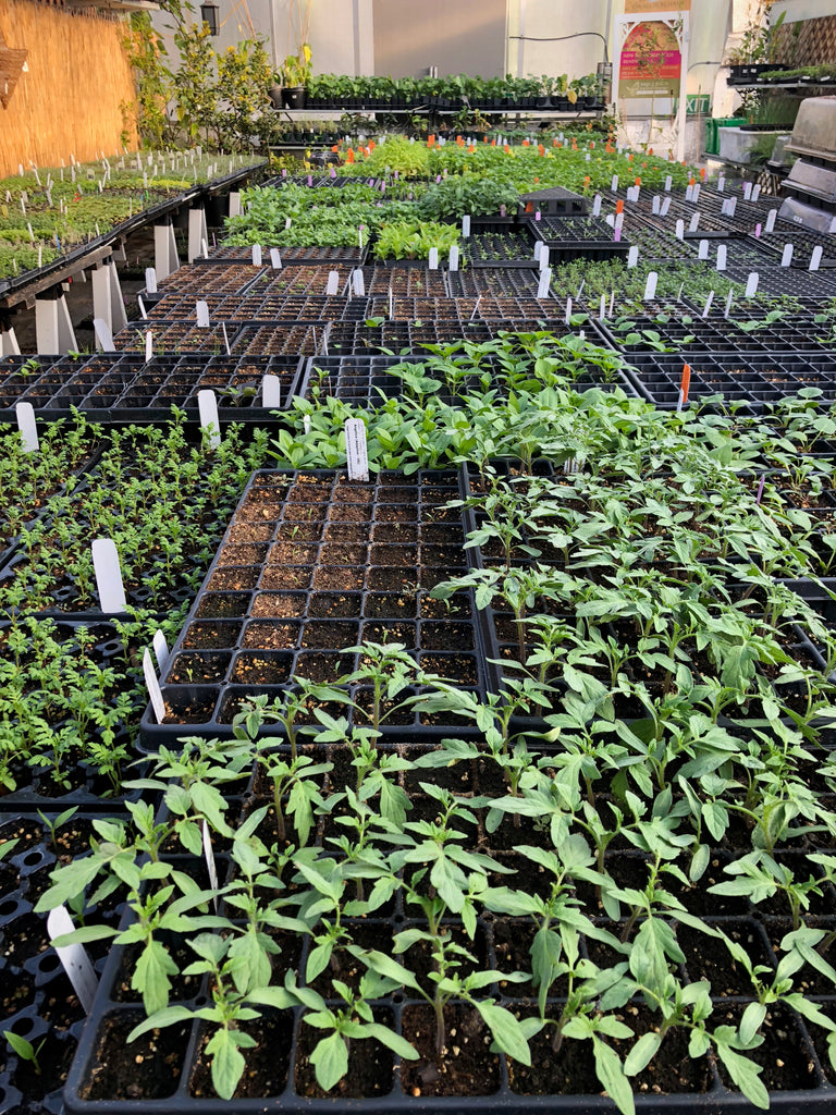 4) Nourish. Seeds contain all of the energy required to germinate, but it does not take long for seedlings to run out of steam if they do not have access to nutrients. We alway apply liquid kelp (Sea Magic) at the time of sowing and bi-weekly there after. Once the plants have their second set of true leaves we alternate the kelp with Evolve Seedling Starter. Beyond the nutrients present in these supplements there are also enzymes (in the kelp) and micro-organisms (Evolve Organic) that help plants fight of disease and establish a high-functioning roots system. Feeding makes a difference!