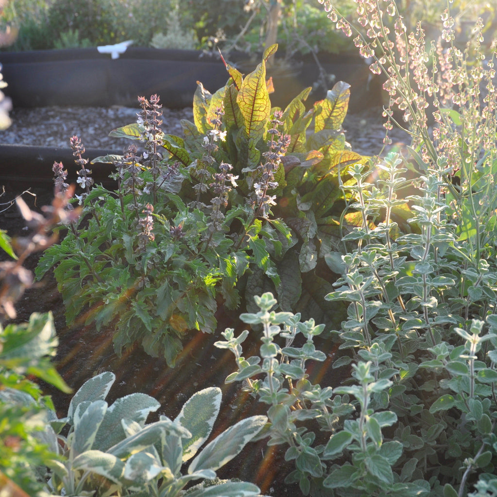 Annual herbs such as this basil often taste best when harvested pre-flowering, although a good hard prune can stimulate loads of late season leafy re-growth