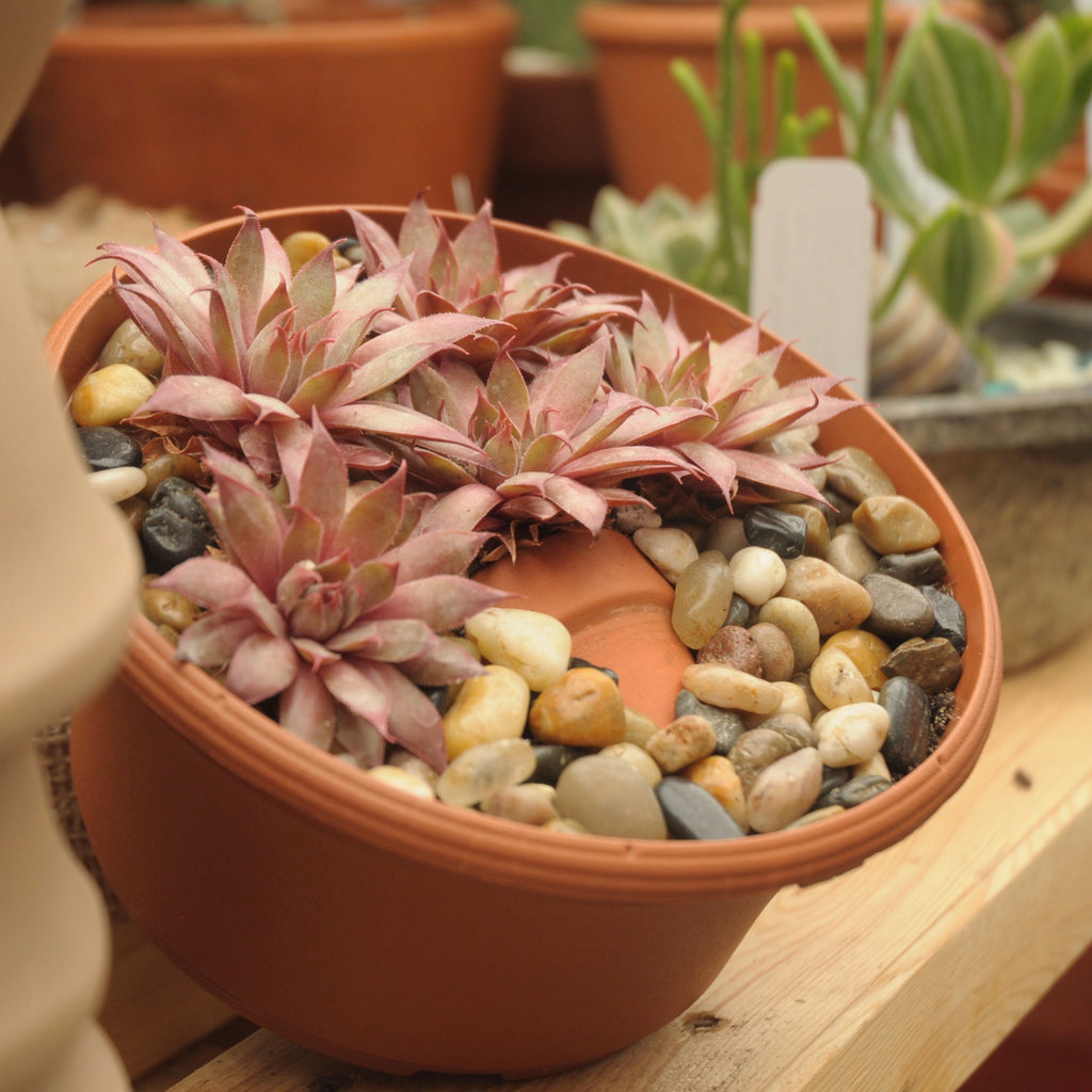 - 6 - 8 succulent divisions (we have 6" pots of hens and chicks that have 5 - 9 individual succulents in them, which are very affordable)