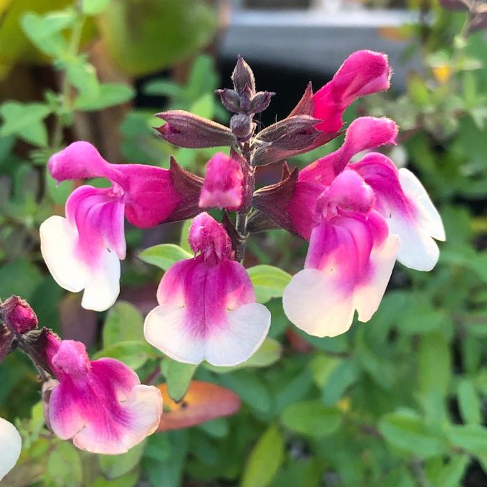 Mirage Bicolor Rose Sage blooms now through October, is edible and attracts many beneficials!