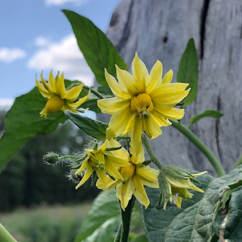 Ever notice that at certain points in the season your tomato flowers seem to be extra full? These double or even triple flowers are sometimes called "megablooms", which occur when two or more flowers fuse together during development. These bear XL fruit which is typically highly uneven in shape but perfectly fine to eat. The cause is not fully understood, but what is known is that megablooms are not usually caused by a disease, instead likely a combination of genetic disposition, environmental conditions and degree of plant maturity. In my experience, large fruiting beefstake tomatoes are by-far the most likely to display megablooms.