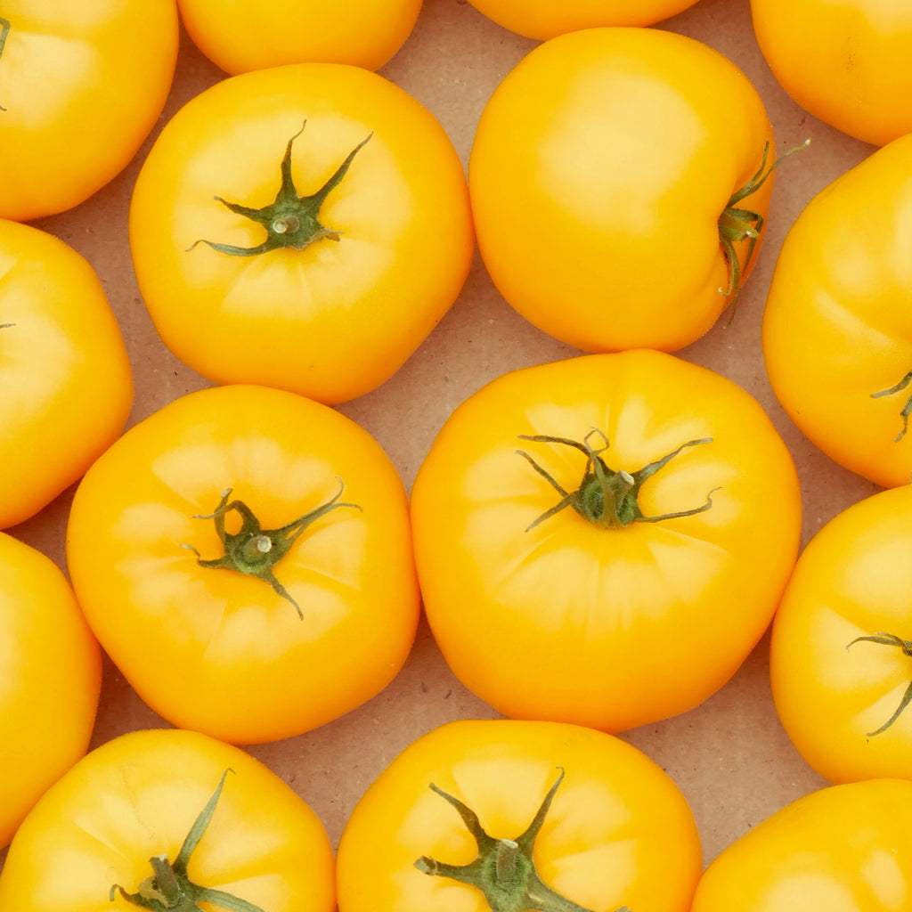 Description: You'll fall in love with the deep yellow orange tones of this blemish-free beefsteak! The flavour is balanced, with hints of both acid and sweetness. A perfect slicer.
