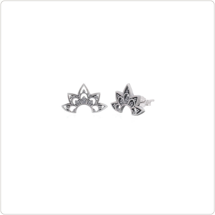 An intricate lotus design in a stud earring with butterfly backs. The lotus has long been regarded as a symbol of inner beauty and triumph over obstacles.